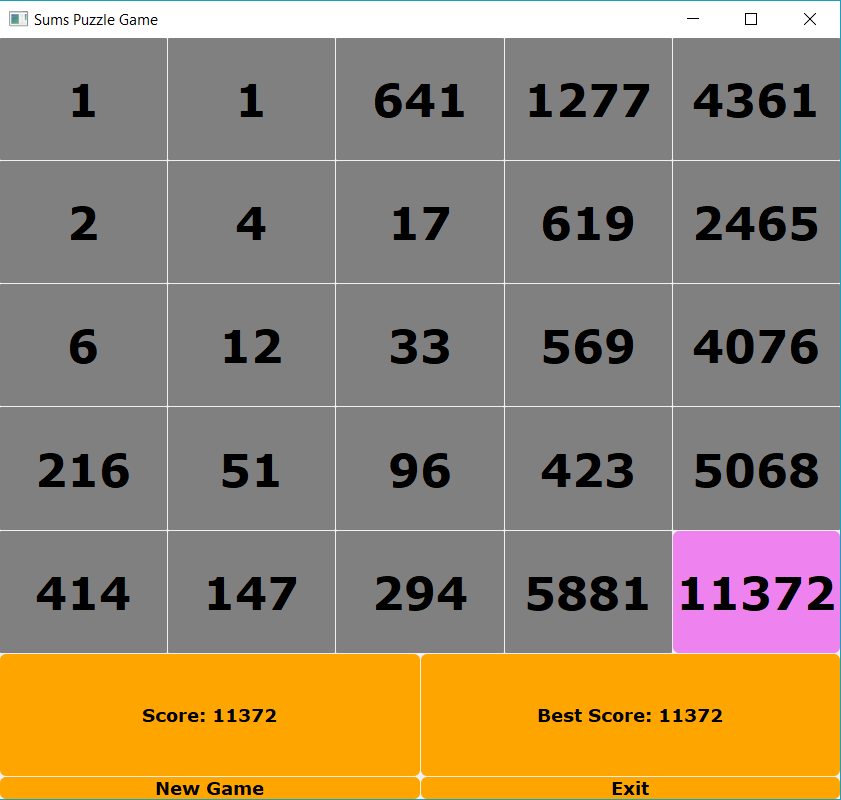 The next screen shot for the Sum Puzzle Game