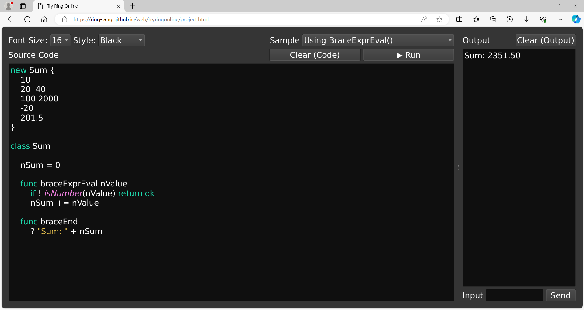 Embedding Ring Language in C/C++ Programs